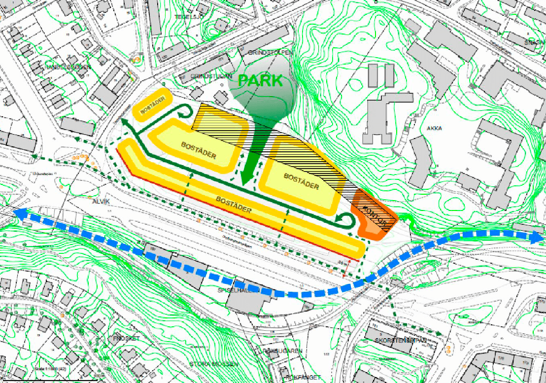 Efter att Region Stockholm färdigställt en överdäckning av Alviksdepån planerar Stockholm stad en ny stadsdel på platsen med cirka 400 bostäder, kontor, en integrerad depå med spårområde, park och gator.