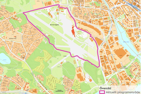 Syftet med programmet, enligt Stadsbyggnadskontorets Start-PM är att studera en utveckling med blandad stadsbebyggelse på det markområde som idag utgörs av Bromma flygplats. Bromma flygplats utgör idag ett av få större sammanhängande områden med möjlighet till omfattande stadsutveckling i Stockholm. Läget i staden och områdets storlek på cirka 130 hektar ger enligt kontoret, och vänstermajoriteten, unika möjligheter att åstadkomma en klimatsmart och hållbar målpunkt i regionen. Utveckling av ett så stort området ger staden samma möjligheter att bygga större stadsdelar som Hammarby sjöstad och Norra Djurgårdsstaden. Enligt en tidig bedömning kan cirka 16 000 bostäder och ett stort antal arbetsplatser rymmas inom flygplatsområdet. Om flygplatsen stängs kan dessutom omgivande områden också bebyggas tätare, där det nu inte varit lämpligt med bostäder. Även det skulle kunna ge ett större tillskott av bostäder. Tidiga uppskattningar indikerar att det kan totalt kan tillskapas cirka 22 500 nya bostäder på mark som reserverats för inflygning och på själva landningsbanan då flygplatsen avvecklas. Söder om flygplatsen finns en planering för 1230 bostäder längs Linta gårdsväg, delvis i inflygningsbanan för flygplatsen.