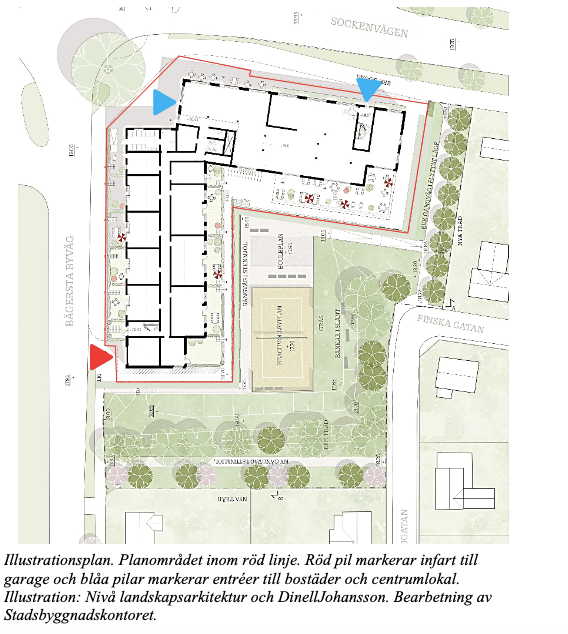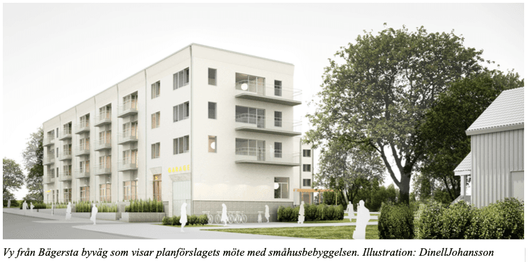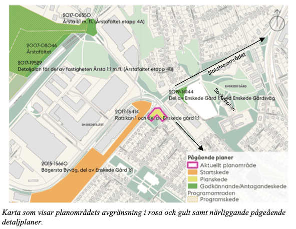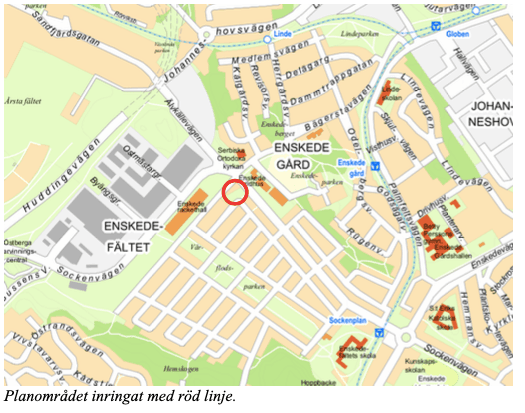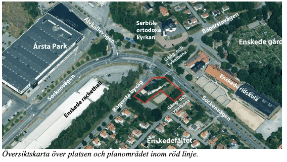 Staden planerar för cirka 70 bostäder utmed Sockenvägen och Bägersta byväg där bottenvåningen ska innehålla centrumändamål. Fastigheten Rättikan 1 ägs av Stockholms kommun och upplåts just nu med tomträtt till Enskede Värdshus Projekt AB.