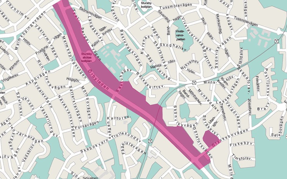 Örbyleden är inte kraftigt trafikerad och är i nuläget överdimensionerad, dock måste beredskap finnas för den ökade belastningen i samband med bebyggelseutvecklingen i söderort. Viss bebyggelse längs med Örbyleden kan vara positivt då det kopplar ihop Stureby och Örby. Däremot utgör ledens parkmark idag viktiga rekreationsområden för hundrastgårdar, bollplaner och motionsplatser. Ifall områdets bebyggs bör det vara med småskaliga hus och undvika att ta viktiga rekreationsytor i anspråk.