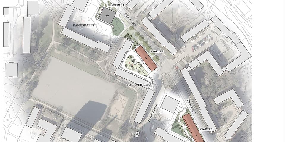 140 bostäder fördelade på tre nya bostadshus föreslås längs med Sjösavägen. Den nya bebyggelsen föreslås vara i två hus på 5-våningar vardera samt ett punkthus på 15-våningar. Resultatet blir att parkeringsplatser försvinner. Istället föreslås parkeringsplatser ordnas i underjordiska garage. Men det återstår att se om antalet platser blir tillräckligt för befintliga och nytillkommande lägenheter. Det är även oklart vad priset för dessa platser blir i och med de högre kostnaderna för underjordiska garage jämfört med boendeparkering eller parkeringsplatser utomhus.