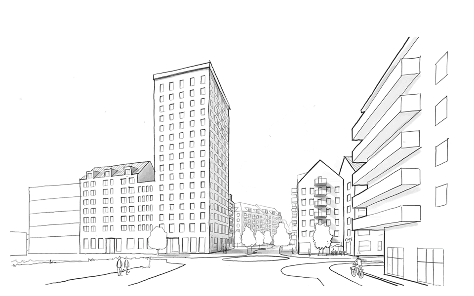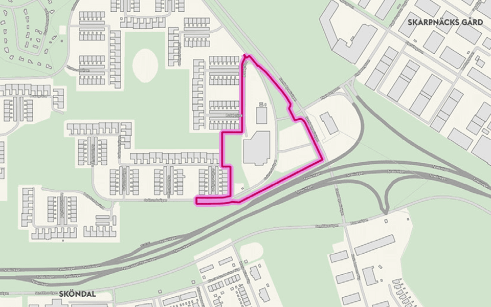 Bebyggelse av ca 450 bostäder, centrum och förskola i tre kvarter separerade av gator och parkmark i ett projekt för att koppla samman Sköndal med Skarpnäck, ärende 2020-00580. I samrådet kom synpunkter på att området får en för hög exploateringsgrad, för stor skala jämfört med omgivande bebyggelse och att trafiksituationen blir ansträngd. Projektet omarbetas nu avseende höjden och kvartersstrukturen. Gårdarna blir större, fler gångstråk skapas och det ges större fri areal runt skyddsvärda ekar.