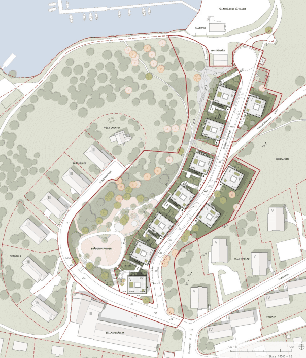 I backen längs Klubbensborgsvägen ner mot Mälarhöjdens båtklubb planeras tio punkthus om fem våningar som ska ge 150 bostäder. Platsen utgörs idag av ett skogsområde för rekreation och ekosystemtjänster.
