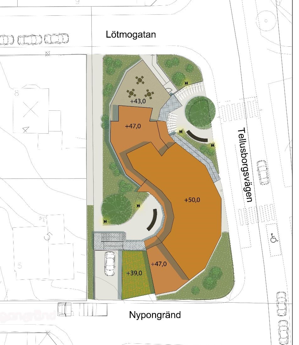 Grönområdet i Midsommarkransen, som är omgivet av Lötmogatan, Nypongräns och Tellusborgsvägen, planeras att genomgå stora förändringar. Trots att området har ett kulturhistoriskt värde, ville staden tidigare bygga 60 nya bostäder i en S-formad byggnad på upp till 5 våningar. Men detaljplanen blev överklagad till Mark- och miljödomstolen den 21 mars 2019, eftersom grannarna ansåg att den skulle orsaka stora problem för deras fastigheter. Domstolen beslutade att upphäva detaljplanen. Staden överklagade, men även Mark- och miljööverdomstolen bedömde att planen skulle skapa stora olägenheter för grannarna och upphävde därför detaljplanen den 13 januari 2020.