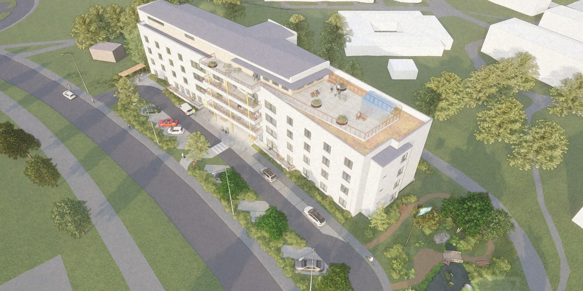 I förslaget ingår ett vård- och omsorgsboende med 77 bostäder i fem våningar längs med Råckstavägen, ärende 2020-12922. Höjd och utformning av huset är anpassad till den omgivande bebyggelsen med kvarteren Vårdaren 1 och Vårdaren 3 i öster och söder som består av bostäder i 3-5 våningar. Huvudentrén ska placeras mot Råckstavägen för att bidra till omvandlingen av Råckstavägen till en stadsgata.