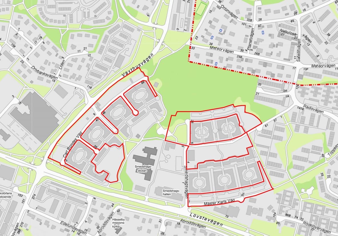 Stadsbyggnadskontoret föreslår 500 bostäder med blandade upplåtelseformer. Byggnationen ska förändra Smedshagen till en urban och tätbebyggd stadsdel. Byggområdet utgörs av bostadsområdet Smedshagen i Hässelby villastad som omfattar Vitsenapen 1-5 som ägs av Hässelby Hem AB och delar av Hässelby villastad 10:13, 14:33 och 31:1 som ägs av Stockholm stad. Fler remissinstanser avstyrker planförslaget utifrån påverkan på kulturmiljö och stadsbild. Från boende och sakägare har synpunkter inkommit gällande bevarande av odlingslotter, parkering och påverkan på natur- och rekreationsvärden. Bearbetning av planförslaget har skett utifrån nämndens beslut att säkerställa parkering och att inte tillåta exploatering i Päronparken.