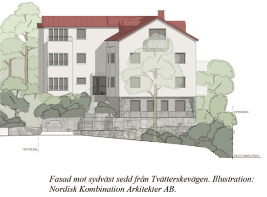 Tillbyggt lägenhetshus vid Badstrandsvägen