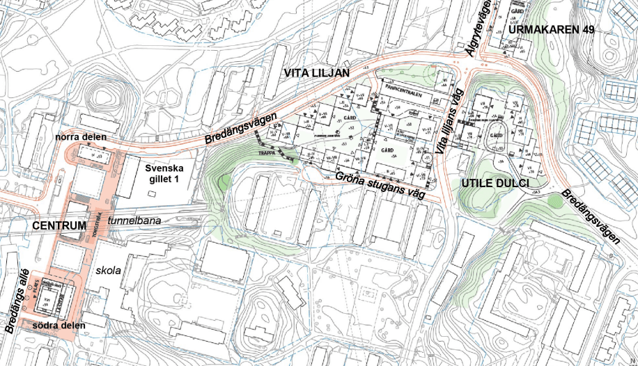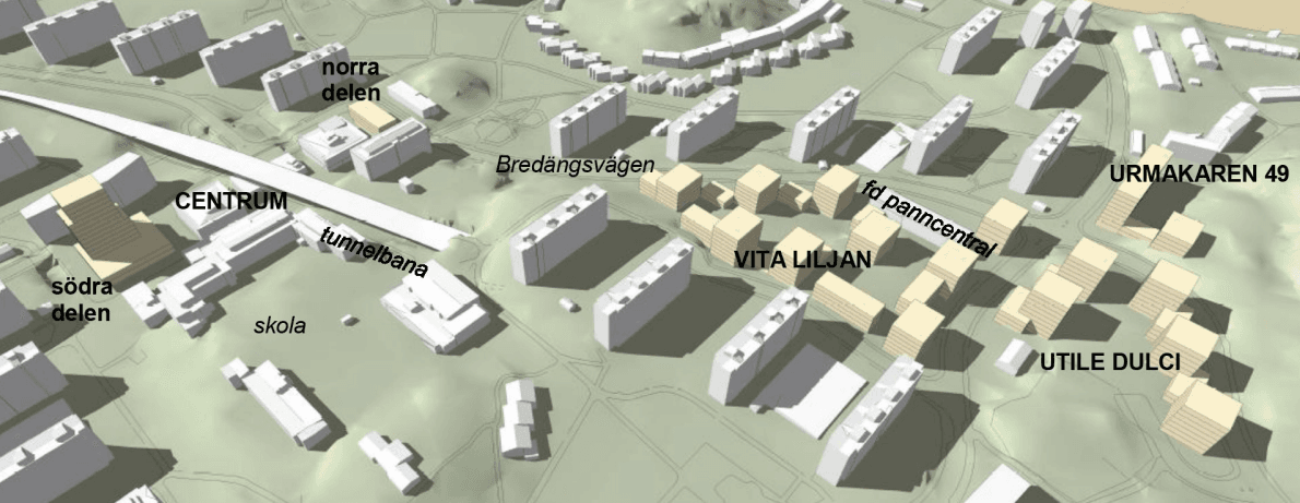 Stadsutvecklingen ska bidra till utveckling av gator samt ny bebyggelse längs delar av Bredängsvägen, Vita Liljans väg, Gröna stugans väg samt Ålgrytevägen.