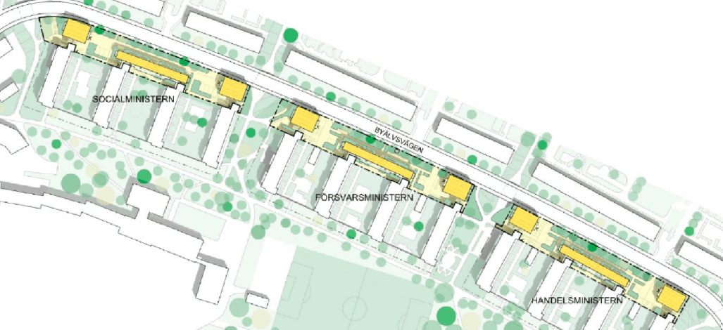 Byälvsvägen kommer att bebyggas med 215 hyresrätter fördelade på nio flerbostadshus. Denna nybyggnation innebär att områdets parkeringsplatser tas i anspråk samtidigt som lindallén som kännetecknar Byälvsvägen hostas.