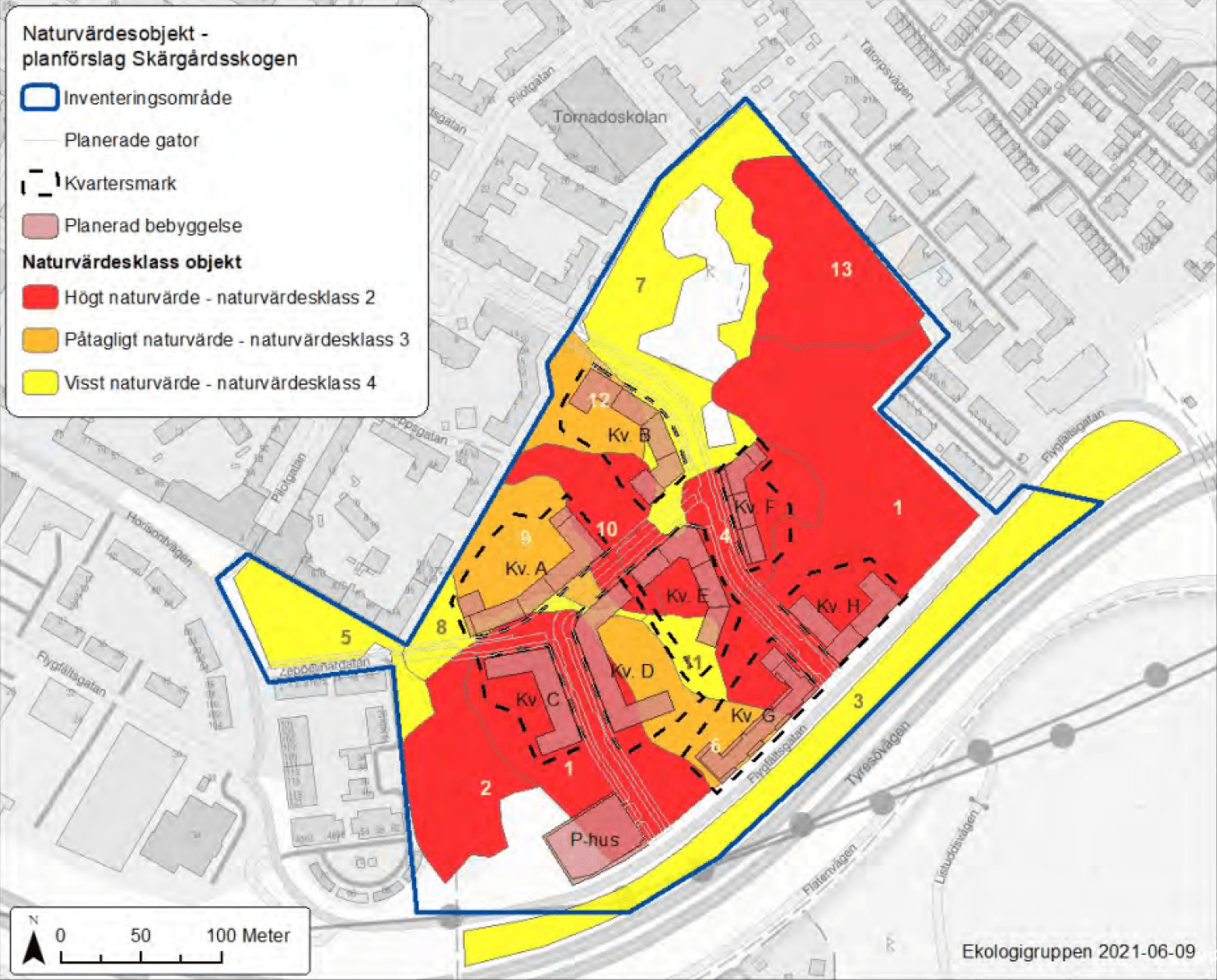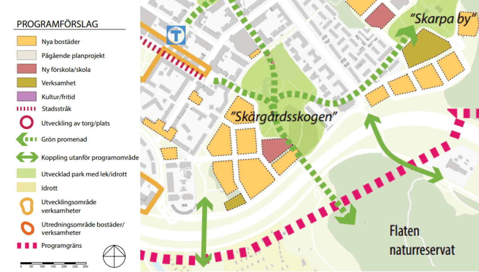 Skärgårdsskogen är föreslagen för bebyggelse med 900 bostäder, fördelade på sju stora kvarter, ärende 2020-05812. Denna mark, som idag används för rekreation och vistelse, är planerad för exploatering.